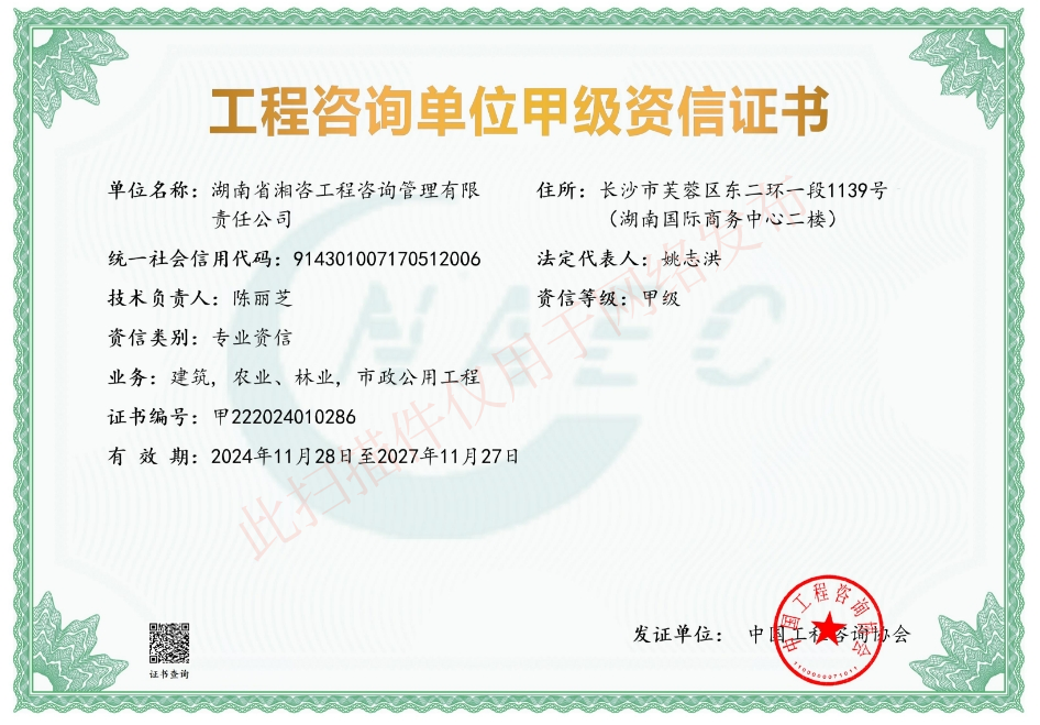喜報|湘咨管理喜獲市政公用工程施工總承包資質(zhì)【貳級】